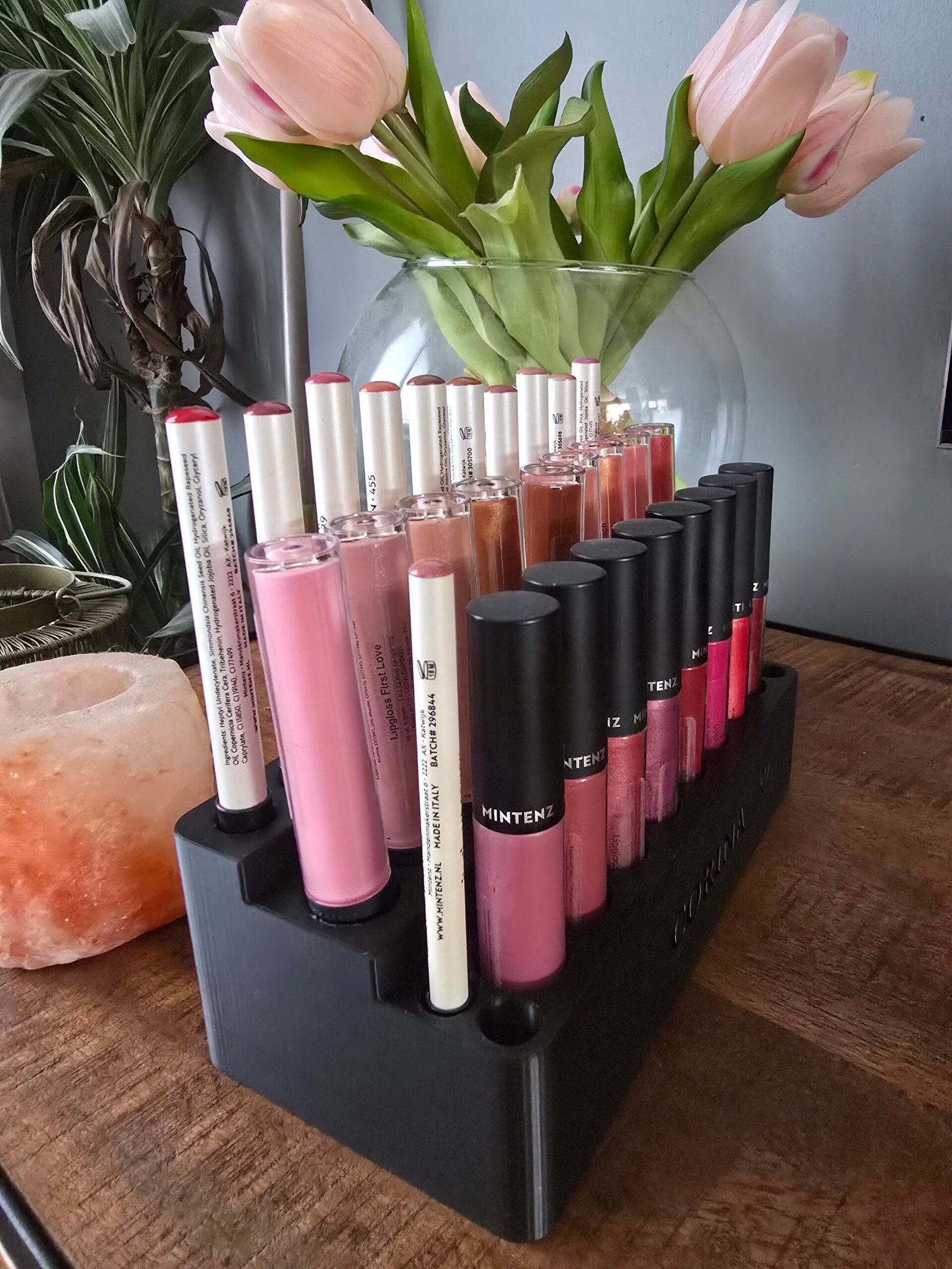 De Lipgloss en Lipstick Houder houdt je lipproducten netjes. Perfect voor vrouwen die van een georganiseerde kaptafel houden en een uniek cadeau zoeken.