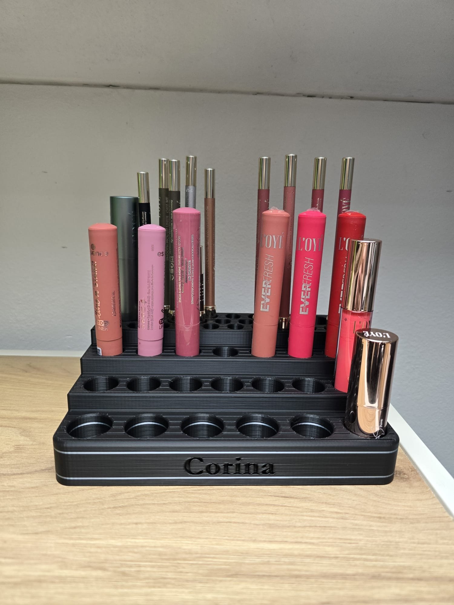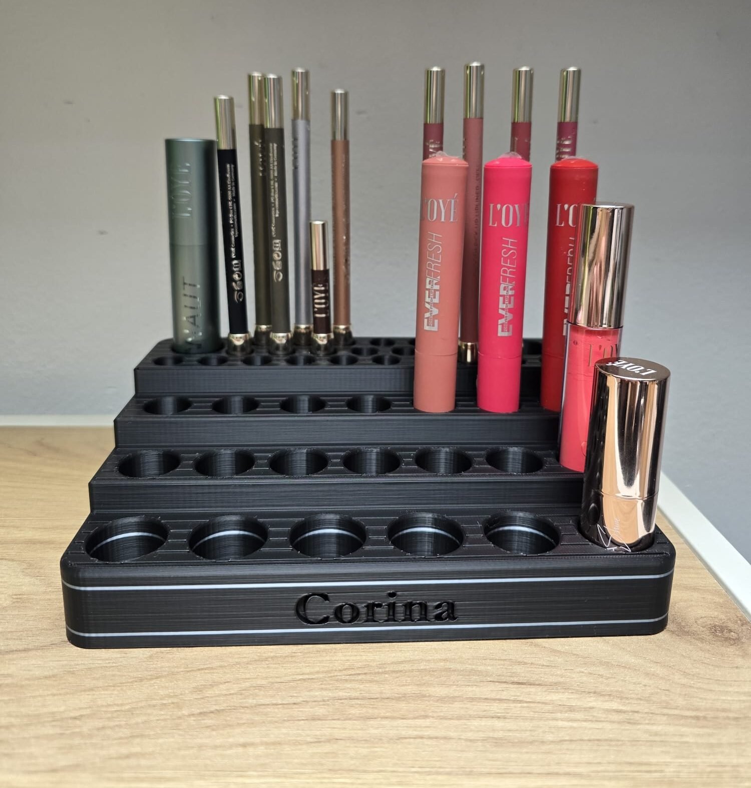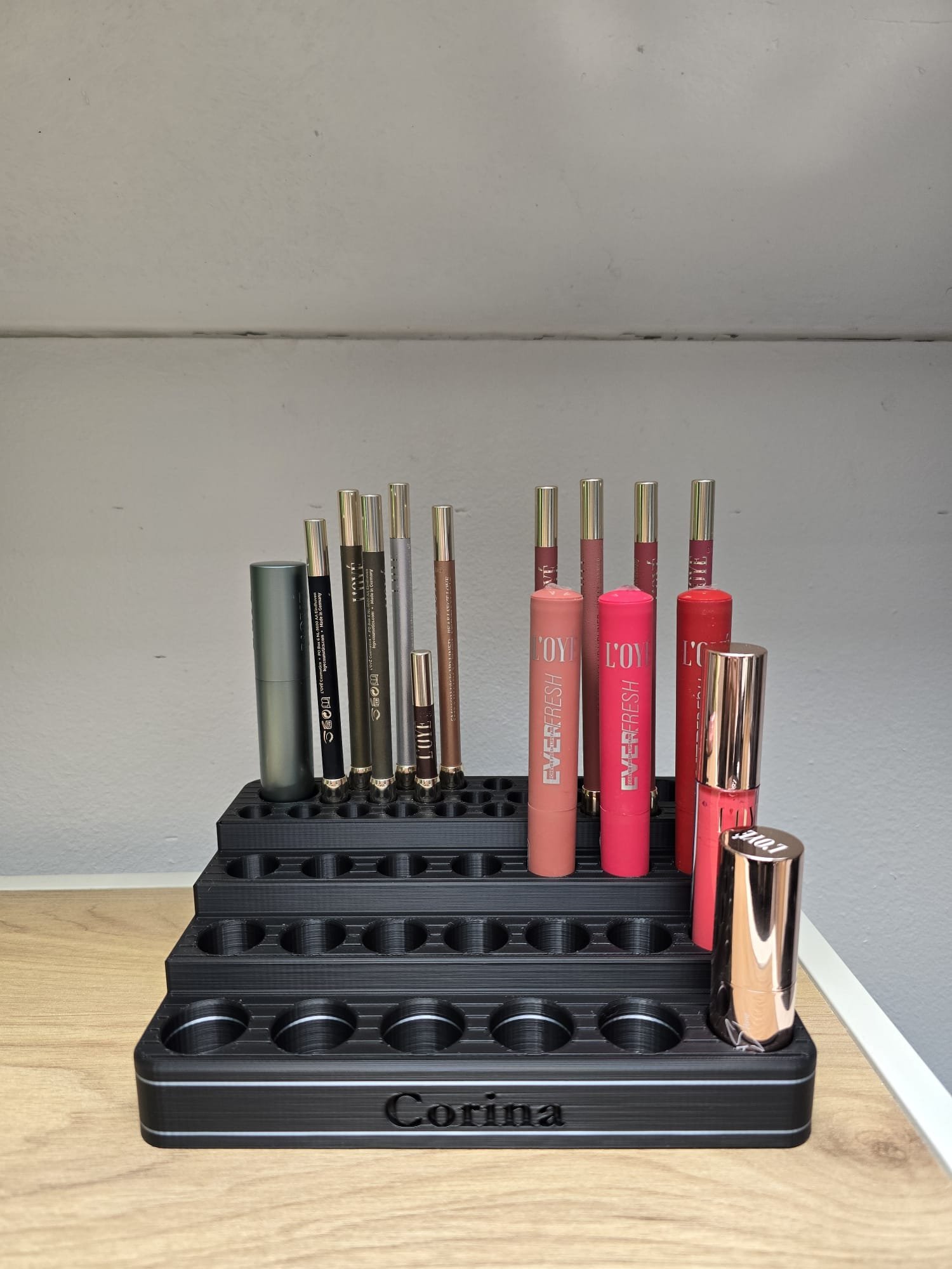 • Capaciteit: Ruimte voor 6 lipsticks, 7 lipglosses, 7 lip stains, 2 mascara’s en 23 lip- of oogpotloden.